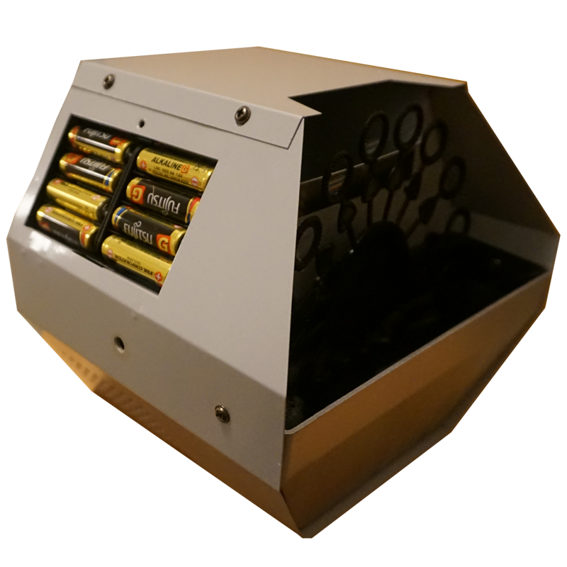 Μεγάλη καινοτομία στις μηχανές σαπουνόφουσκας λειτουργεί μόνο με απλές μπαταρίες εμπορίου, έτσι μπορούμε να το χρησιμοποιήσουμε παντού, ακόμα και εκει που δεν υπάρχει παροχή ρεύματος, έξω απο εκκλησίες κλπ εκμηδενίζουμε τον κίνδυνο ατυχήματος. Προμηθευτείτε και το ειδικό υγρό για τέλειο αποτέλεσμα. Λειτουργεί με 8 μπαταρίες ΑΑ (δεν περιλαμβάνονται)
