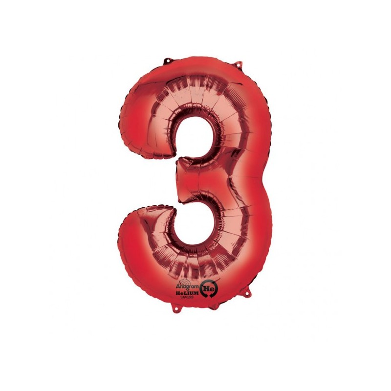 Μπαλόνι Αριθμός 3 20''Χ34'' Κόκκινο. Η τιμή αφορά το μπαλόνι ξεφούσκωτο.