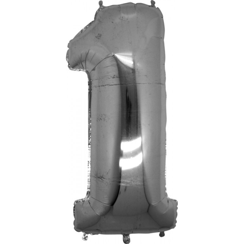 Μπαλόνι Αριθμός 1 13''Χ34" Ασημί. Η τιμή αφορά το μπαλόνι ξεφούσκωτο.