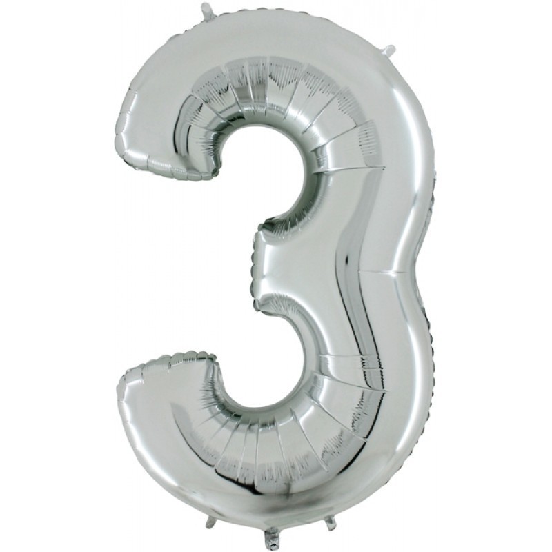 Μπαλόνι Αριθμός 3 20''Χ34'' Ασημί. Η τιμή αφορά το μπαλόνι ξεφούσκωτο.