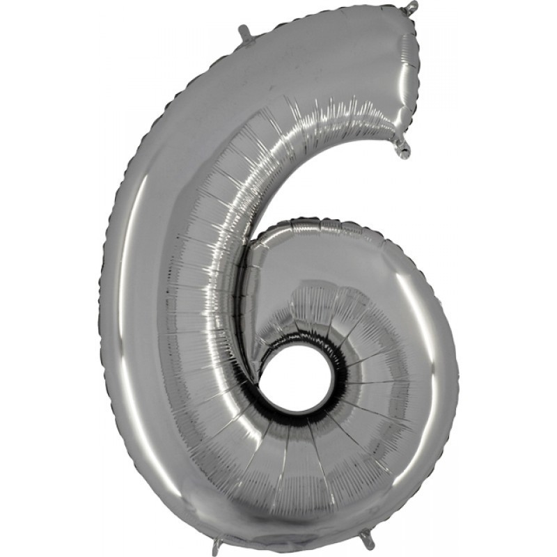 Μπαλόνι Αριθμός 6 22''Χ34'' Ασημί. Η τιμή αφορά το μπαλόνι ξεφούσκωτο.