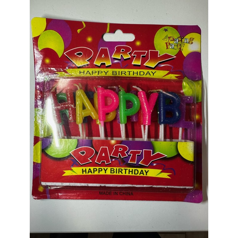 Κεράκια τούρτας γενεθλίων πολύχρωμα με glitter μεμονωμένα γράμματα μήνυμα Happy Birthday.