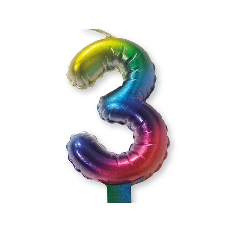 Κεράκι τούρτας γενεθλίων ύψους 9cm αριθμός 3 σε χρώμα Rainbow.