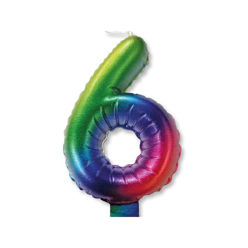 Κεράκι τούρτας γενεθλίων ύψους 9cm αριθμός 6 σε χρώμα Rainbow.