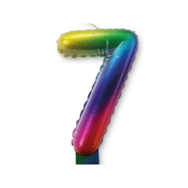 Κεράκι τούρτας γενεθλίων ύψους 9cm αριθμός 7 σε χρώμα Rainbow.