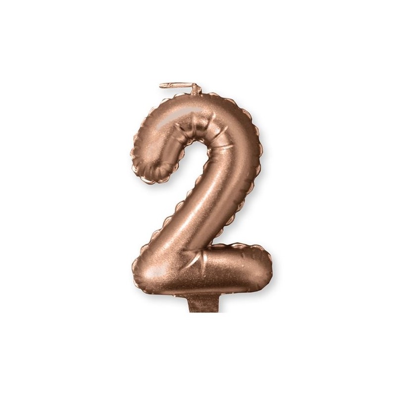Κεράκι τούρτας γενεθλίων ύψους 9cm αριθμός 2 σε χρώμα Ροζ Χρυσό.