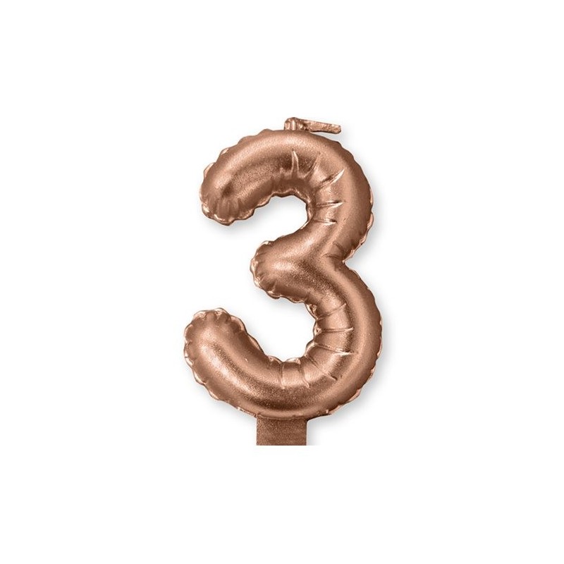 Κεράκι τούρτας γενεθλίων ύψους 9cm αριθμός 3 σε χρώμα Ροζ Χρυσό.