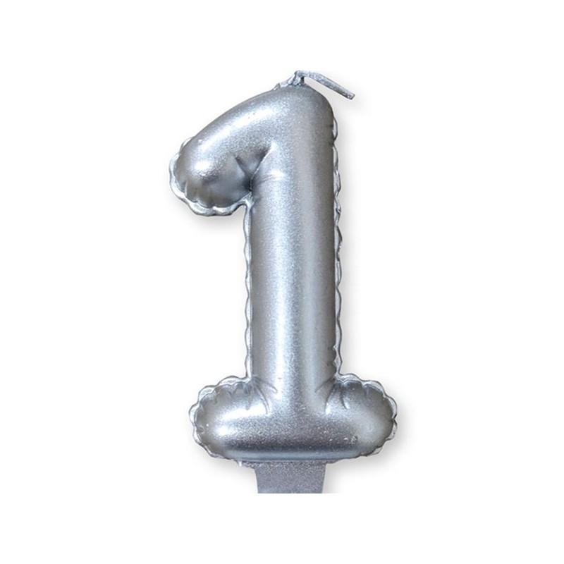 Κεράκι τούρτας γενεθλίων ύψους 9cm αριθμός 1 σε χρώμα Ασημί.