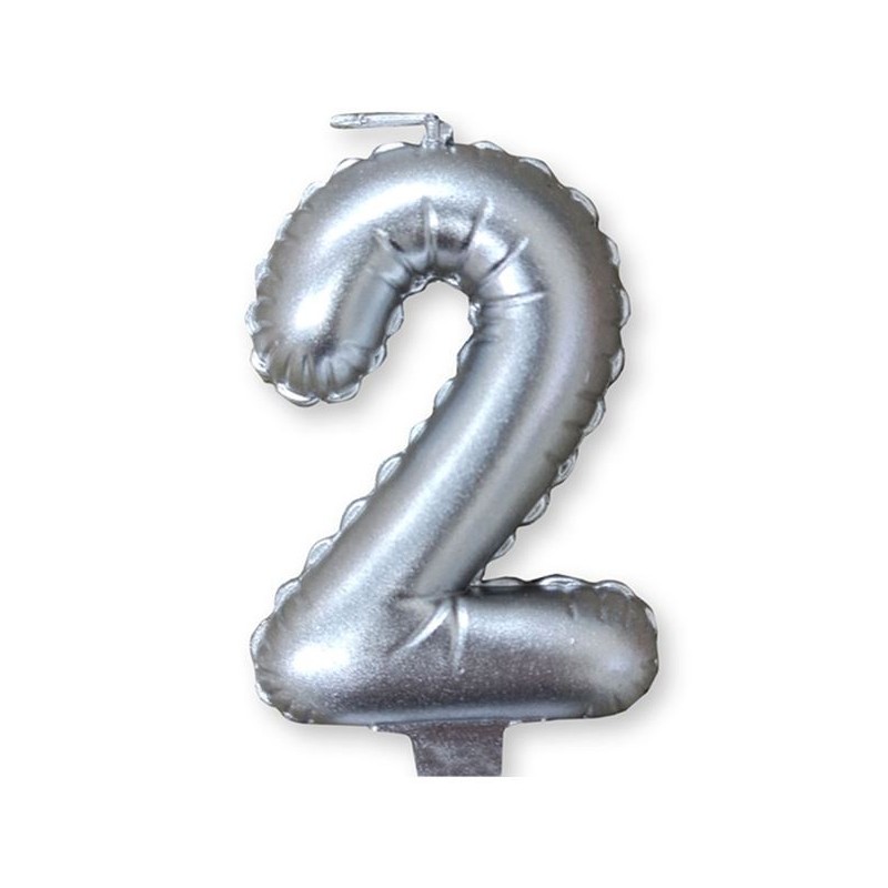 Κεράκι τούρτας γενεθλίων ύψους 9cm αριθμός 2 σε χρώμα Ασημί.