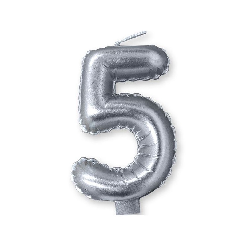 Κεράκι τούρτας γενεθλίων ύψους 9cm αριθμός 5 σε χρώμα Ασημί.