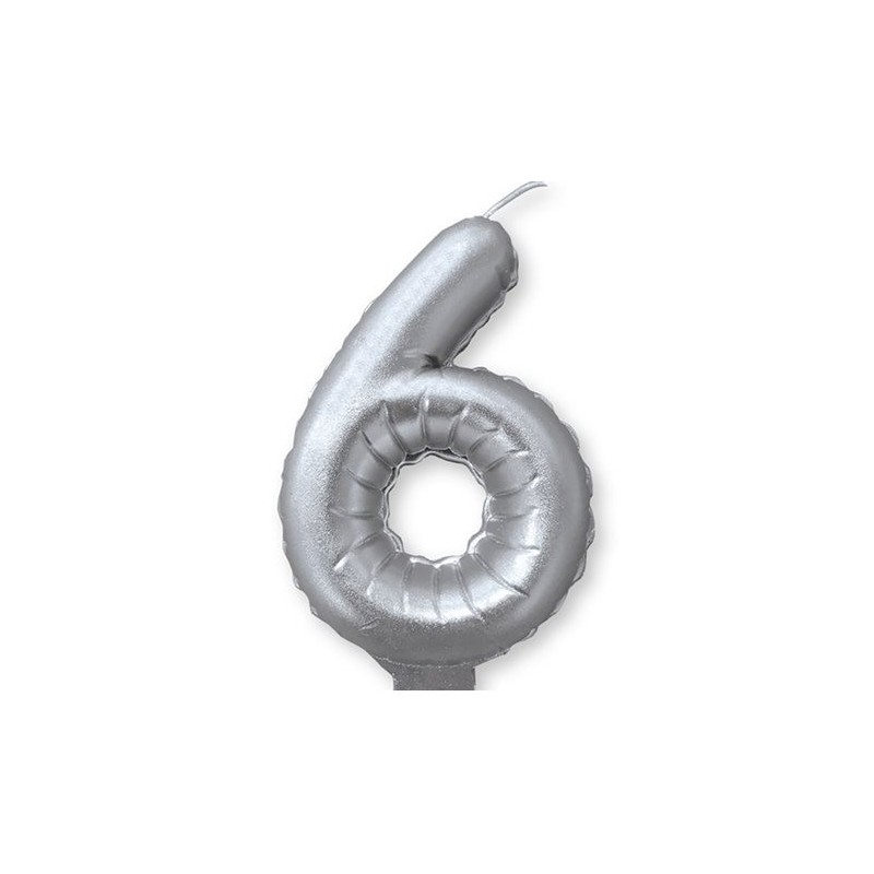 Κεράκι τούρτας γενεθλίων ύψους 9cm αριθμός 6 σε χρώμα Ασημί.