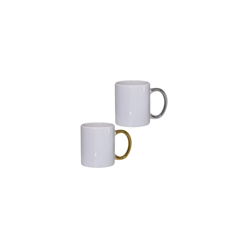 Κούπα λευκή με ασημί χερούλι και με τύπωμα φωτογραφίας ή μηνύματος της αρεσκείας σας. Τυπώνουμε ό,τι επιθυμείτε. Ιδανικές για δωράκια, μπομπονιέρες ή αναμνηστικά. Κεραμική κούπα 11oz. Δεν μπαίνει σε φούρνο μικροκυμάτων και πλυντήριο πιάτων.