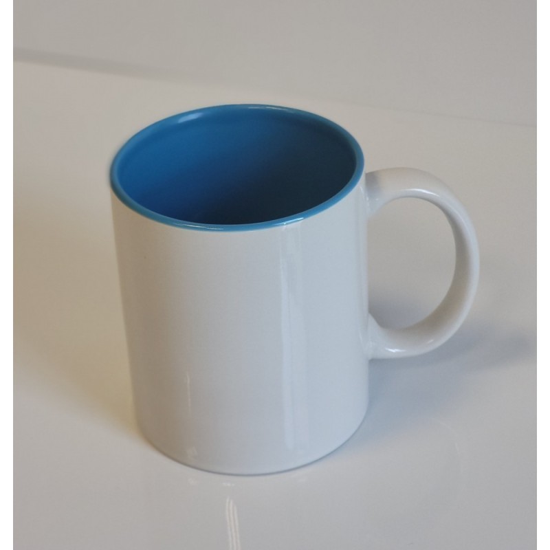 Κούπα λευκή χρωματισμένη εσωτερικά γαλάζια με τύπωμα φωτογραφίας ή μηνύματος της αρεσκείας σας. Τυπώνουμε ό,τι επιθυμείτε. Ιδανικές για δωράκια, μπομπονιέρες ή αναμνηστικά. Κεραμική κούπα 11oz. Δεν μπαίνει σε φούρνο μικροκυμάτων και πλυντήριο πιάτων.
