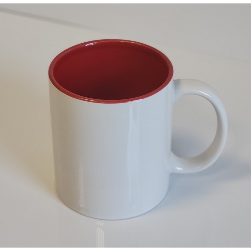Κούπα λευκή χρωματισμένη εσωτερικά κόκκινη με τύπωμα φωτογραφίας ή μηνύματος της αρεσκείας σας. Τυπώνουμε ό,τι επιθυμείτε. Ιδανικές για δωράκια, μπομπονιέρες ή αναμνηστικά. Κεραμική κούπα 11oz. Δεν μπαίνει σε φούρνο μικροκυμάτων και πλυντήριο πιάτων.