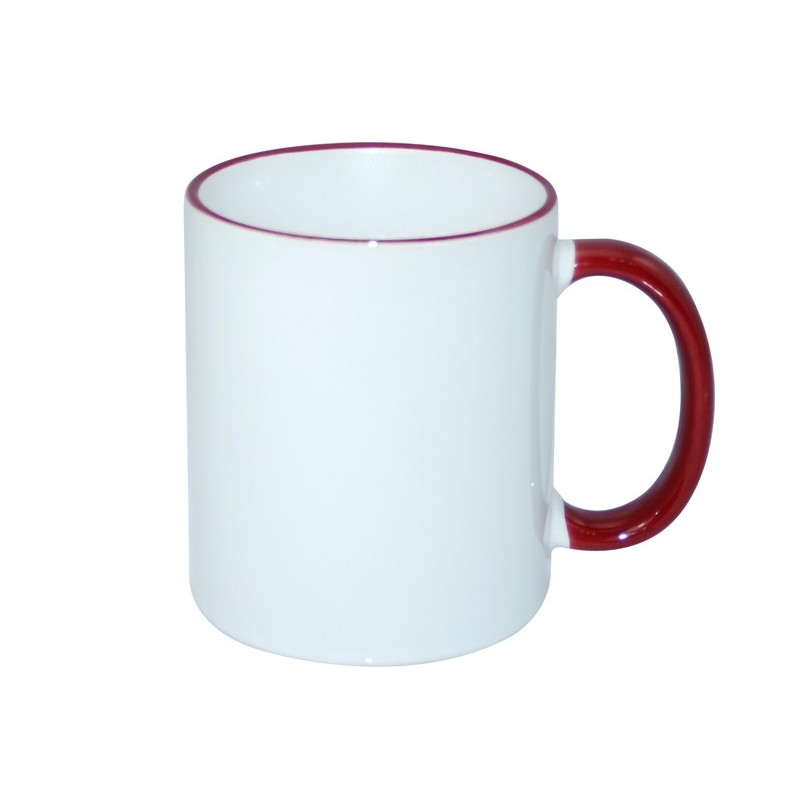 Κούπα λευκή με χρωματιστό χείλος και χερούλι σε μπορντώ χρώμα και με τύπωμα φωτογραφίας ή μηνύματος της αρεσκείας σας. Τυπώνουμε ό,τι επιθυμείτε. Ιδανικές για δωράκια, μπομπονιέρες ή αναμνηστικά. Κεραμική κούπα 11oz. Δεν μπαίνει σε φούρνο μικροκυμάτων και πλυντήριο πιάτων.