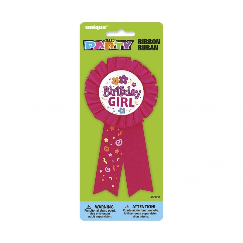 Κονκάρδα γενεθλίων 8cm x 15cm φούξια με μήνυμα Birthday Girl.