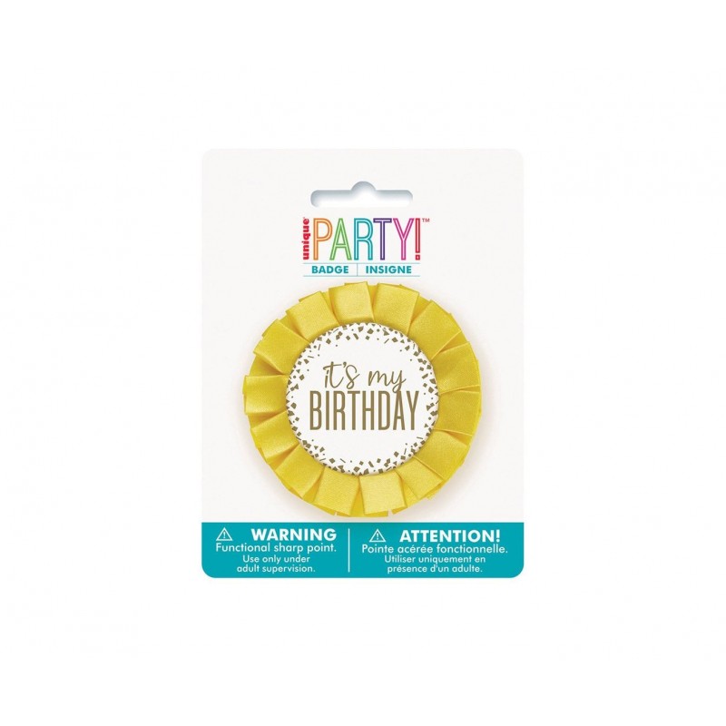 Κονκάρδα γενεθλίων 8cm άσπρη με χρυσό με μήνυμα it's my Birthday.