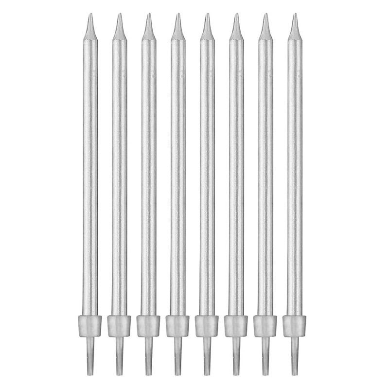 Κεράκια τούρτας γενεθλίων 10 cm με βάσεις ασημί.