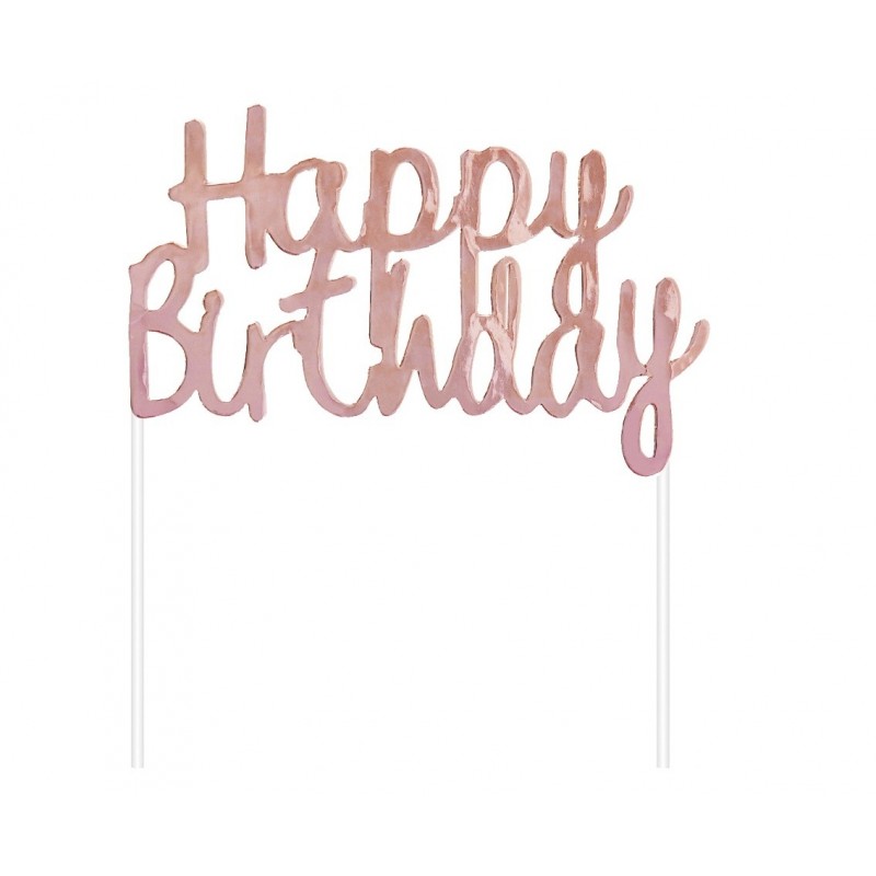 Διακοσμητικό Τούρτας Χάρτινο Happy Birthday Ροζ Χρυσό
