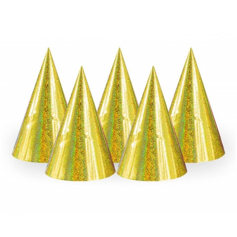 Καπελάκια Πάρτι κωνικά χάρτινα σε χρυσό χρώμα με λαστιχάκι. Ασυσκεύαστο προϊόν.