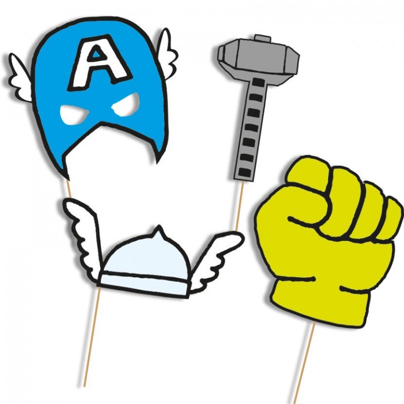 Χάρτινα αξεσουάρ φωτογράφισης με καλαμάκια με θέμα Avengers σε 4 διαφορετικά σχέδια. Θεματικό πάρτι Marvel με τους Thor, Hulk, Captain America, Iron Man