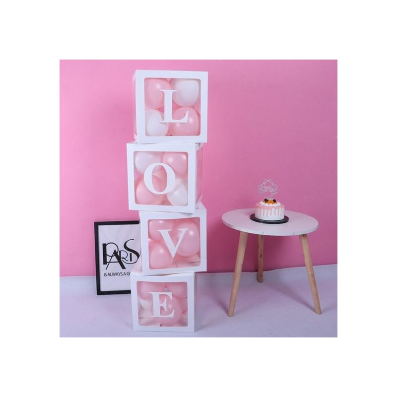 Κουτιά διακόσμησης μπαλονιών 4 τεμάχια 30x30cm άσπρα με θέμα Love