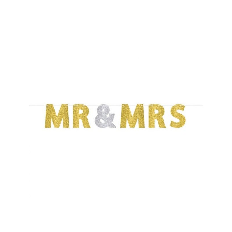 Γιρλάντα Χάρτινη Χρυσή Με Γκλίτερ Mr & Mrs