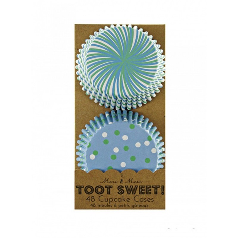 48 Χάρτινες θήκες για Cupcakes γαλάζιο - πράσινο πουά και ριγέ