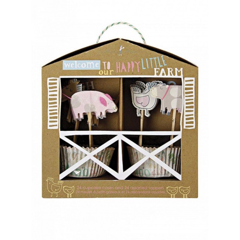 Cupcake Kit με θέμα τη φάρμα. Το σετ περιλαμβάνει 28 θήκες και 28 toppers σε 4 σχέδια