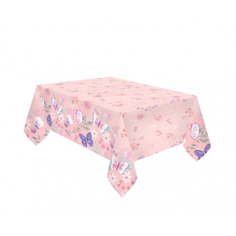 Τραπεζομάντηλο Χάρτινο 120cm x 180cm Ροζ με θέμα Πεταλούδες.