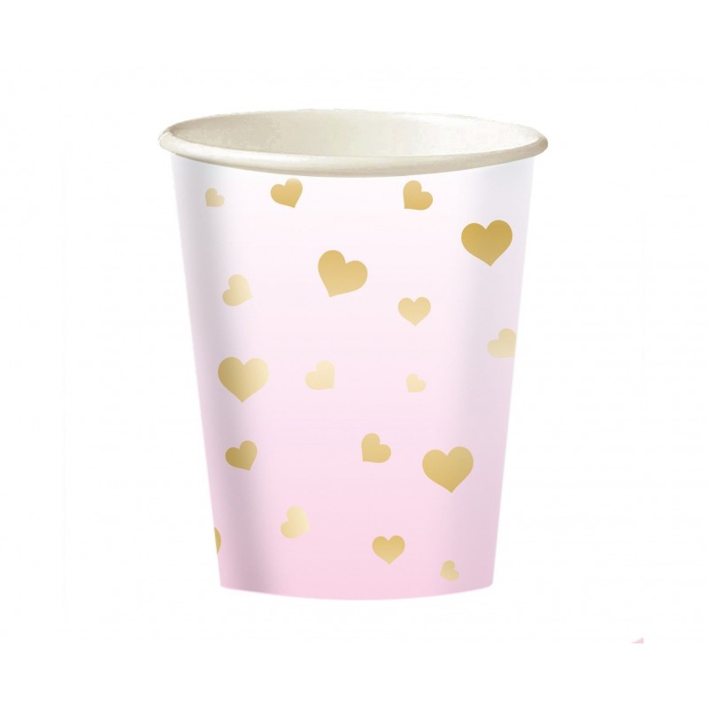 Ποτήρια χάρτινα 250ml ροζ όμπρε με θέμα 1st Birthday.