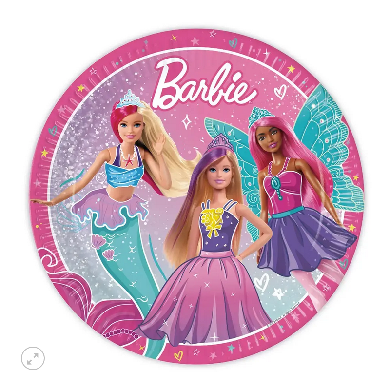 Πιάτα χάρτινα μεγάλα 23cm με θέμα Barbie Fantasy.