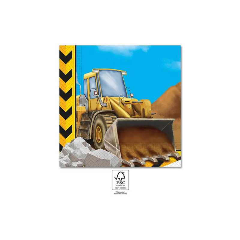 Χαρτοπετσέτες μεγάλες 33 x 33cm με θέμα επαγγελματικά οχήματα, construction, μπουλντόζες.