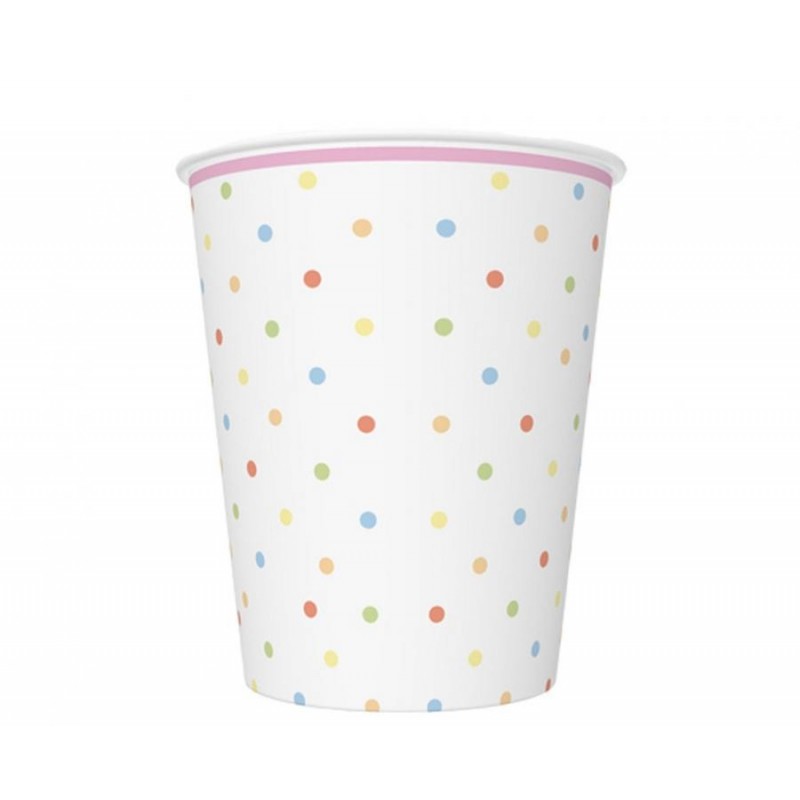Ποτήρια χάρτινα με θέμα γλυκό μονόκερω με παστέλ πουά, χωρητικότητας 250 ml.