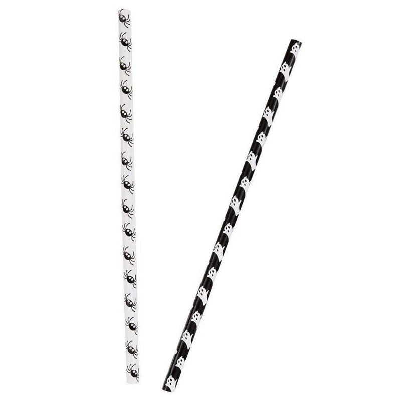 Χάρτινα καλαμάκια Halloween με φαντάσματα και νυχτερίδες