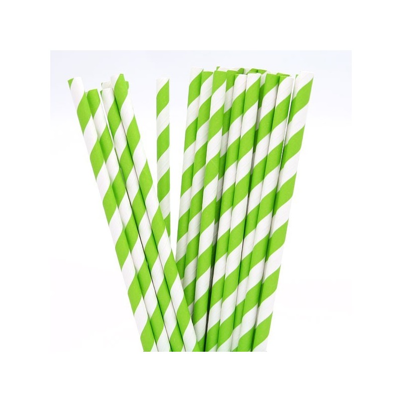 Καλαμάκια χάρτινα ριγέ λαχανί χρώματος μήκους 195mm