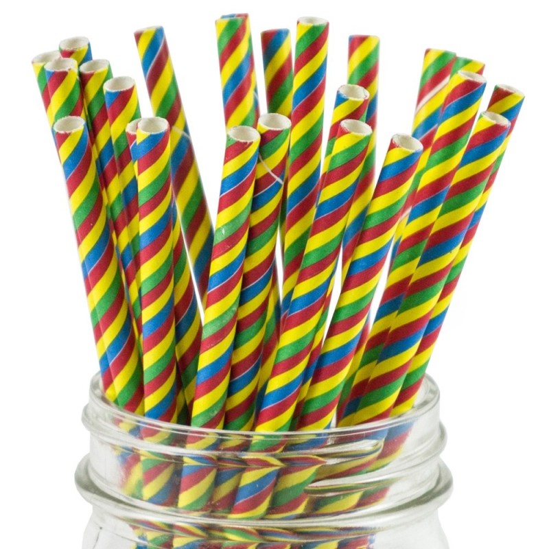 Καλαμάκια Χάρτινα Ριγέ Πολύχρωμα