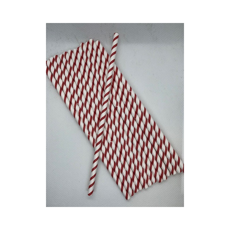 Καλαμάκια χάρτινα ριγέ κόκκινου χρώματος με λεπτή ρίγα, μήκους 195mm