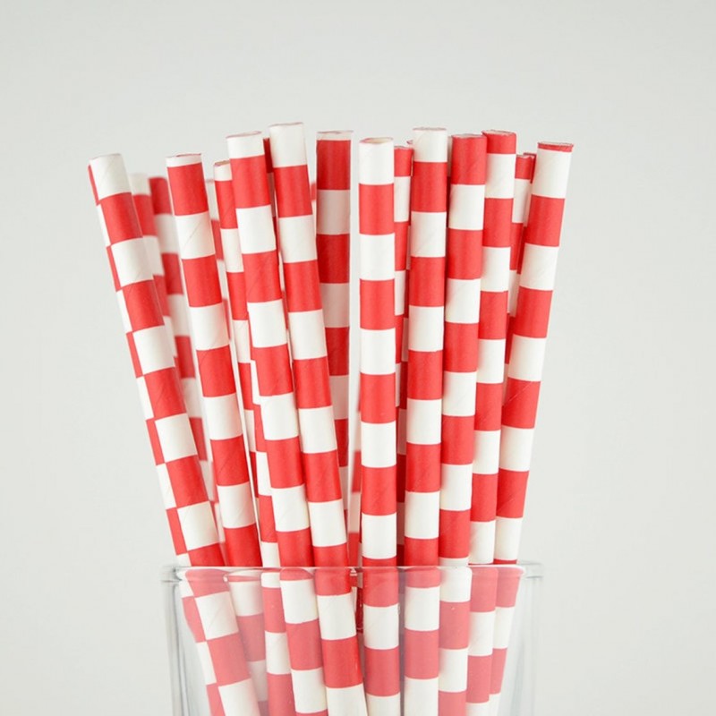 Καλαμάκια Χάρτινα Σκάκι Κόκκινο