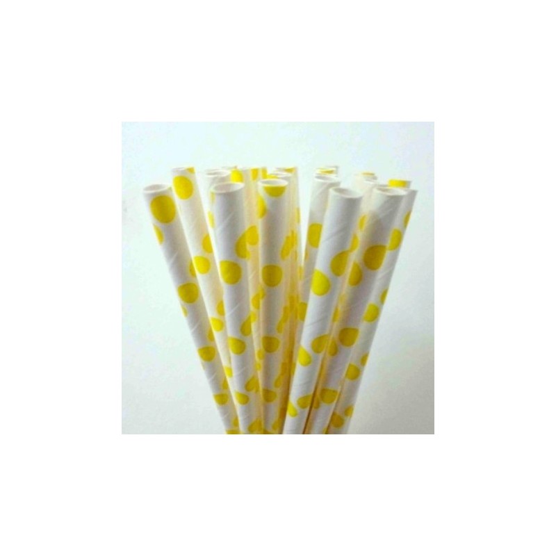 Καλαμάκια χάρτινα λευκού χρώματος με κίτρινο πουά, μήκους 195mm