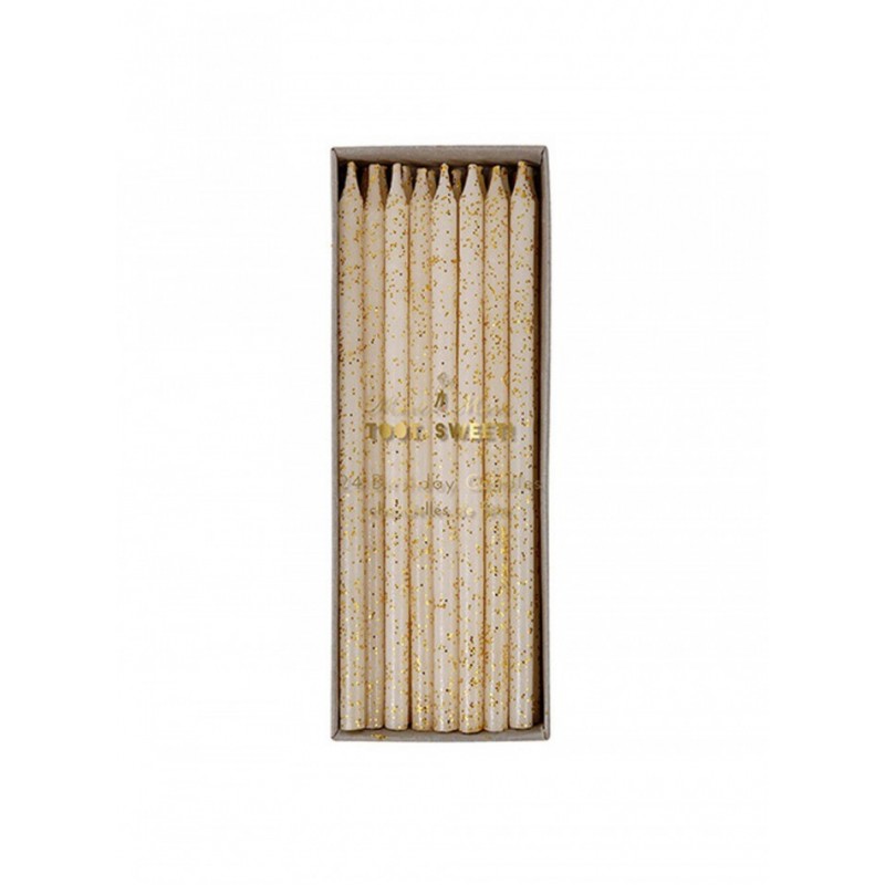 Κεράκια τούρτας ψηλά Meri Meri σε χρυσό glitter χρωμα με βάσεις. Ύψος κεριού 15 εκ.