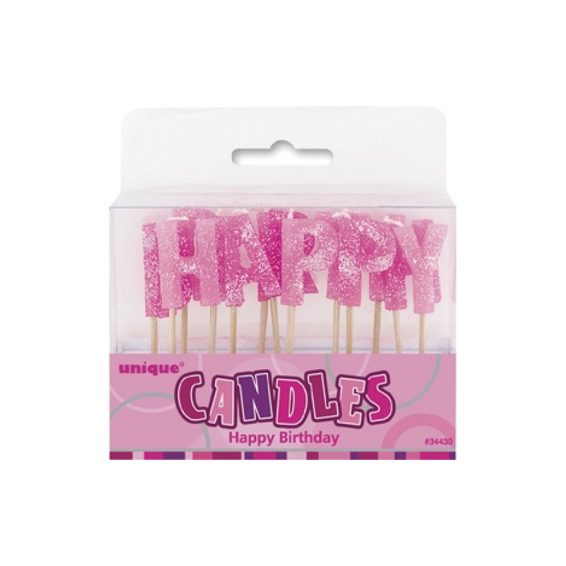 Κεράκια τούρτας γενεθλίων ροζ και φούξια γράμματα Happy Birthday