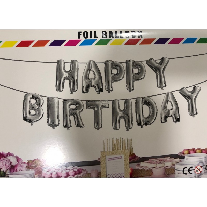 Μπαλόνια foil γράμματα HAPPY BIRTHDAY ύψους 42 εκατοστών σε ασημί χρώμα