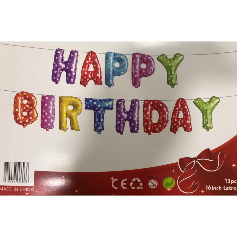 Μπαλόνια foil γράμματα HAPPY BIRTHDAY ύψους 42 εκατοστών πολύχρωμα