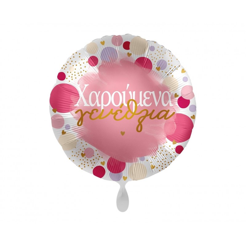 Μπαλόνι foil 17" 43cm με θέμα Χαρούμενα Γενέθλια Πουά Ροζ Και Χρυσό. Η τιμή αφορά το μπαλόνι ξεφούσκωτο.