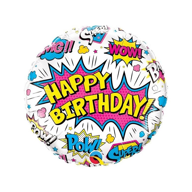 Μπαλόνι foil 18" 46cm με θέμα Birthday Super Hero Άσπρο. Η τιμή αφορά το μπαλόνι ξεφούσκωτο.