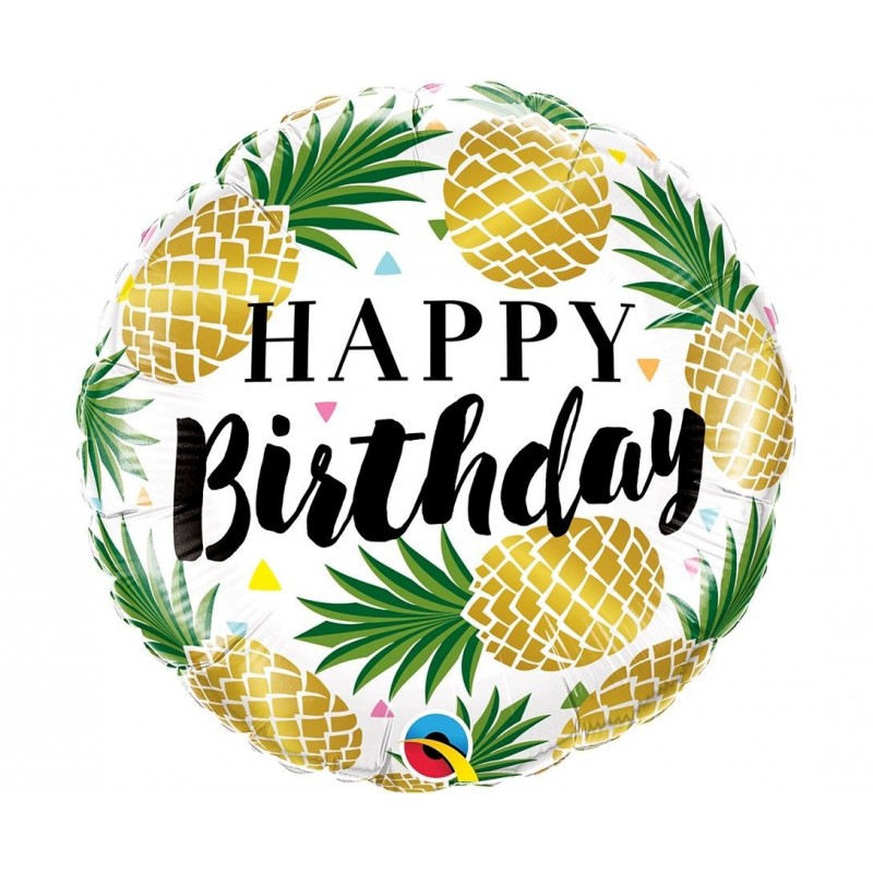 Μπαλόνι foil 18" 46cm στρογγυλό με θέμα Birthday Χρυσός Ανανάς. Η τιμή αφορά το μπαλόνι ξεφούσκωτο.