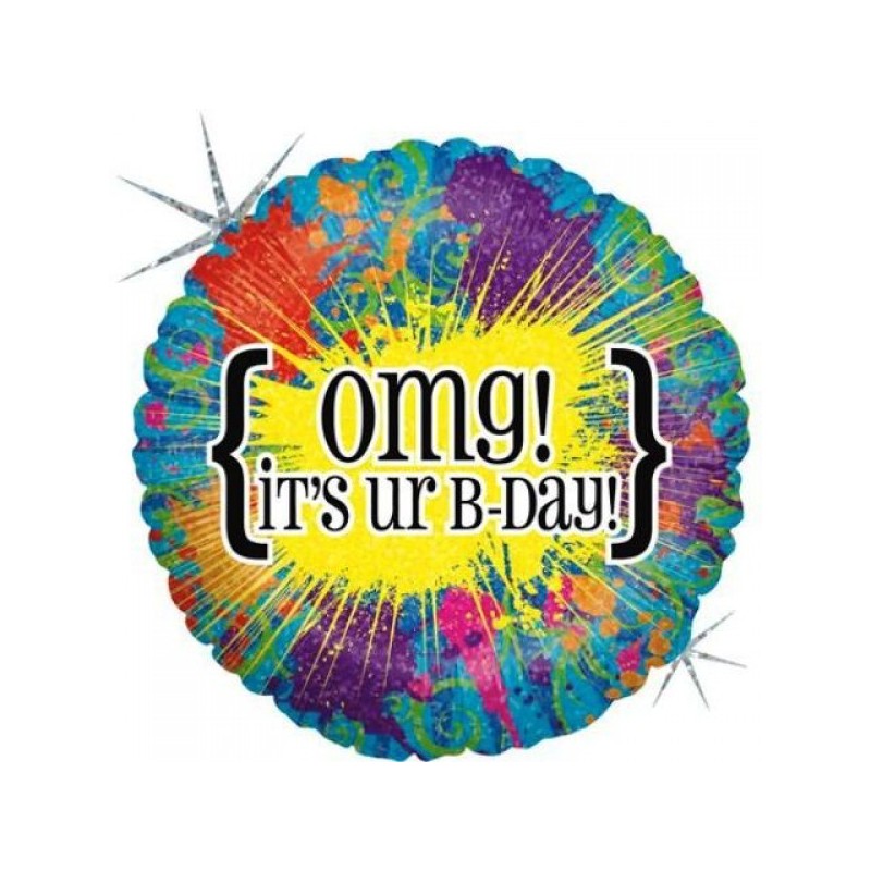 Μπαλόνι foil 18" 46cm με μύνημα Omg! It's Your B-Day. Η τιμή αφορά το μπαλόνι ξεφούσκωτο.