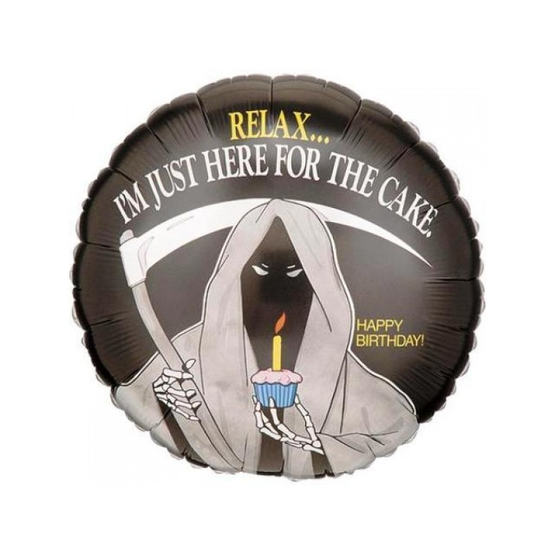 Μπαλόνι foil 18" 46cm με θέμα Happy Birthday Grim Reaper Relax. Η τιμή αφορά το μπαλόνι ξεφούσκωτο.