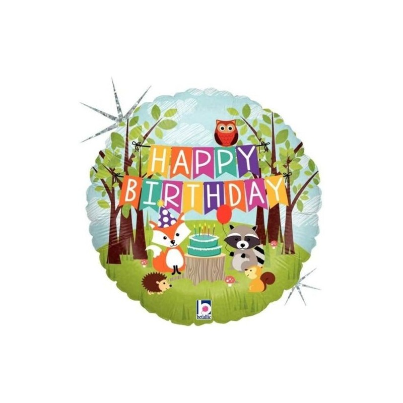 Μπαλόνι foil 18" 46cm με θέμα Happy Birthday Αλεπού και Κάστορας. Η τιμή αφορά το μπαλόνι ξεφούσκωτο.